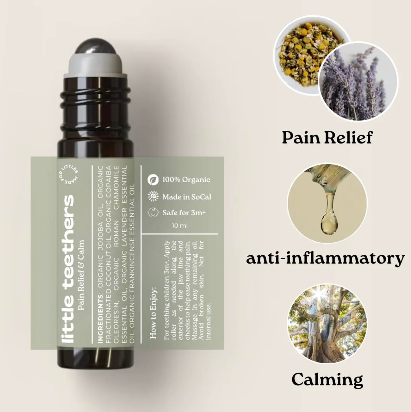 Provide gentle teething relief with this roller, expertly formulated with organic essential oils to soothe your baby's discomfort and ensure happier days for both of you.